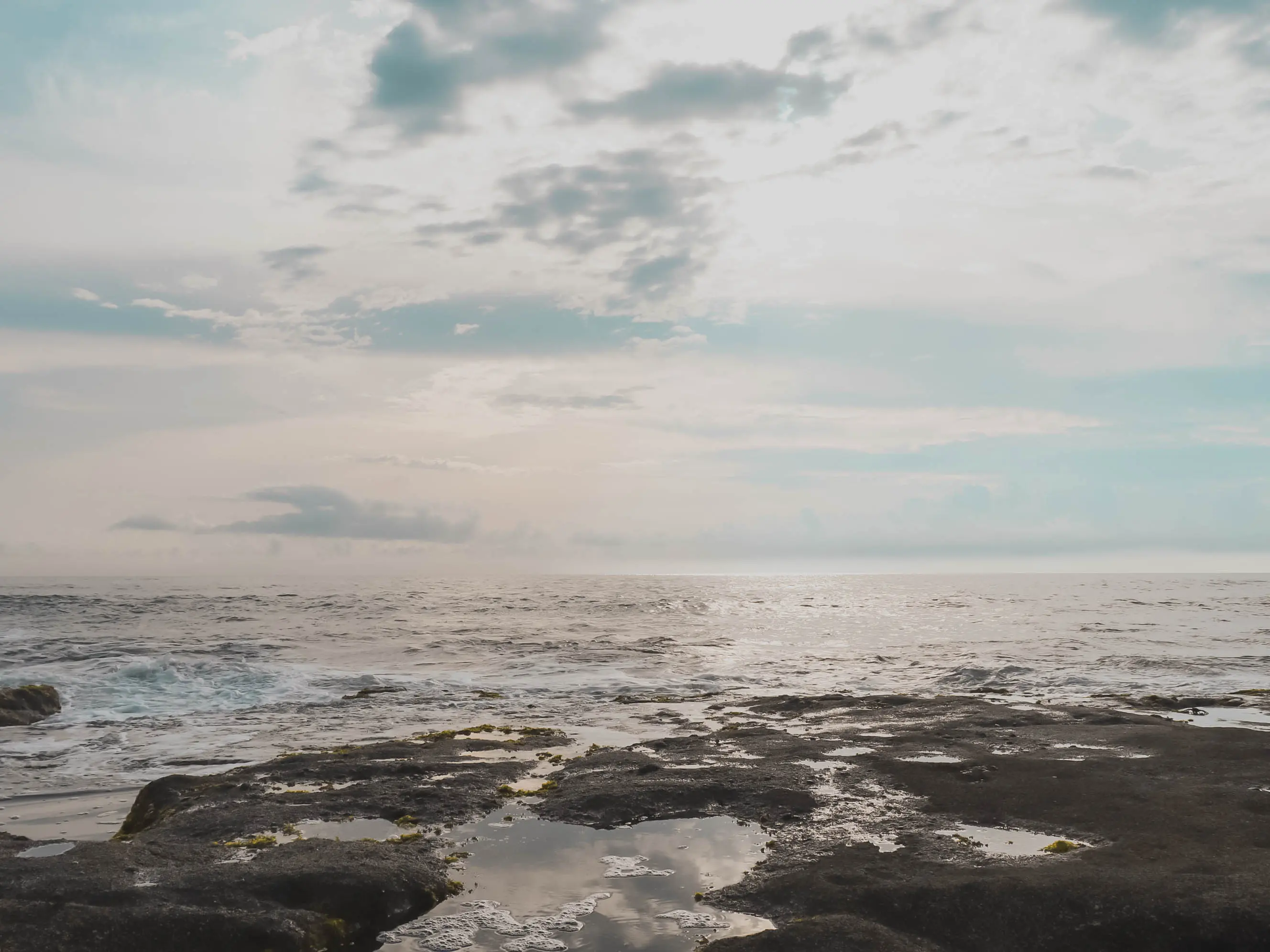 The sun gently descending towards the horizon, casting a golden glow that illuminates the sky and reflects upon the calm waters. Silhouettes of palm trees sway gently in the breeze, framing the scene and adding a touch of tropical allure. The tranquil ambiance and warm hues evoke a sense of peace and serenity, inviting viewers to pause and appreciate the beauty of nature's evening symphony.