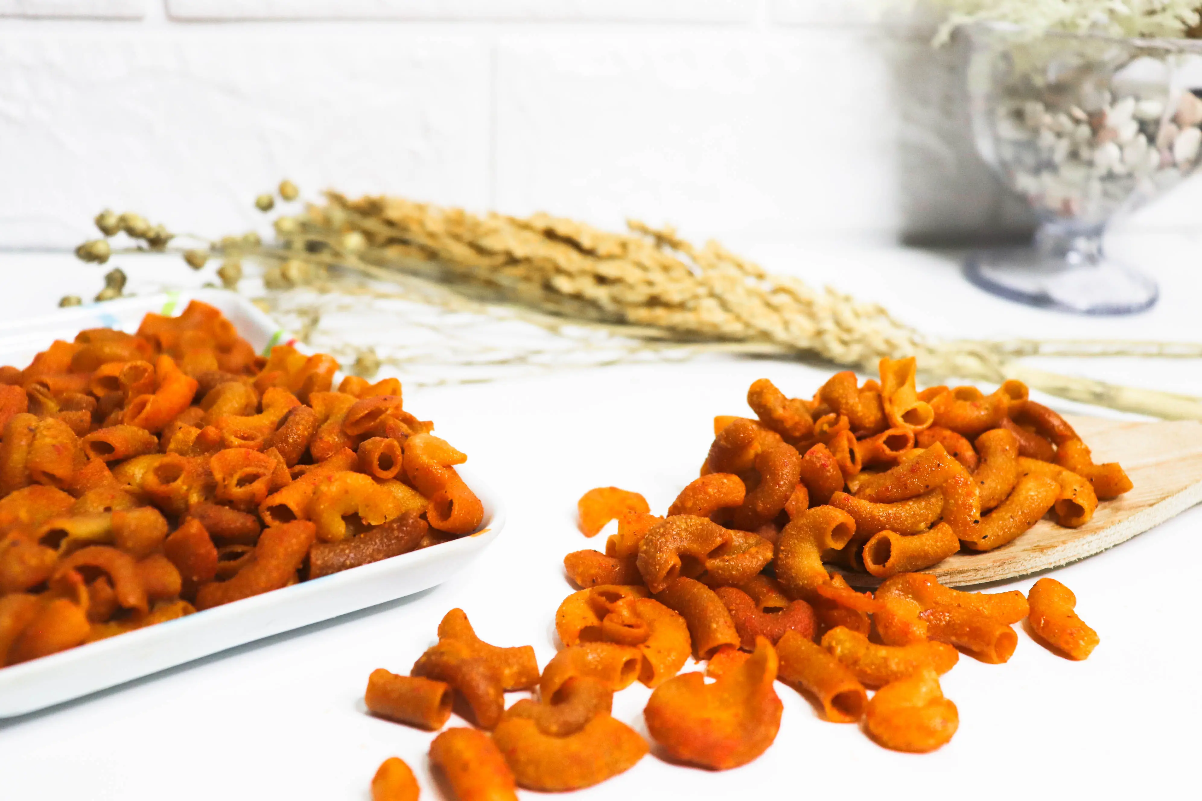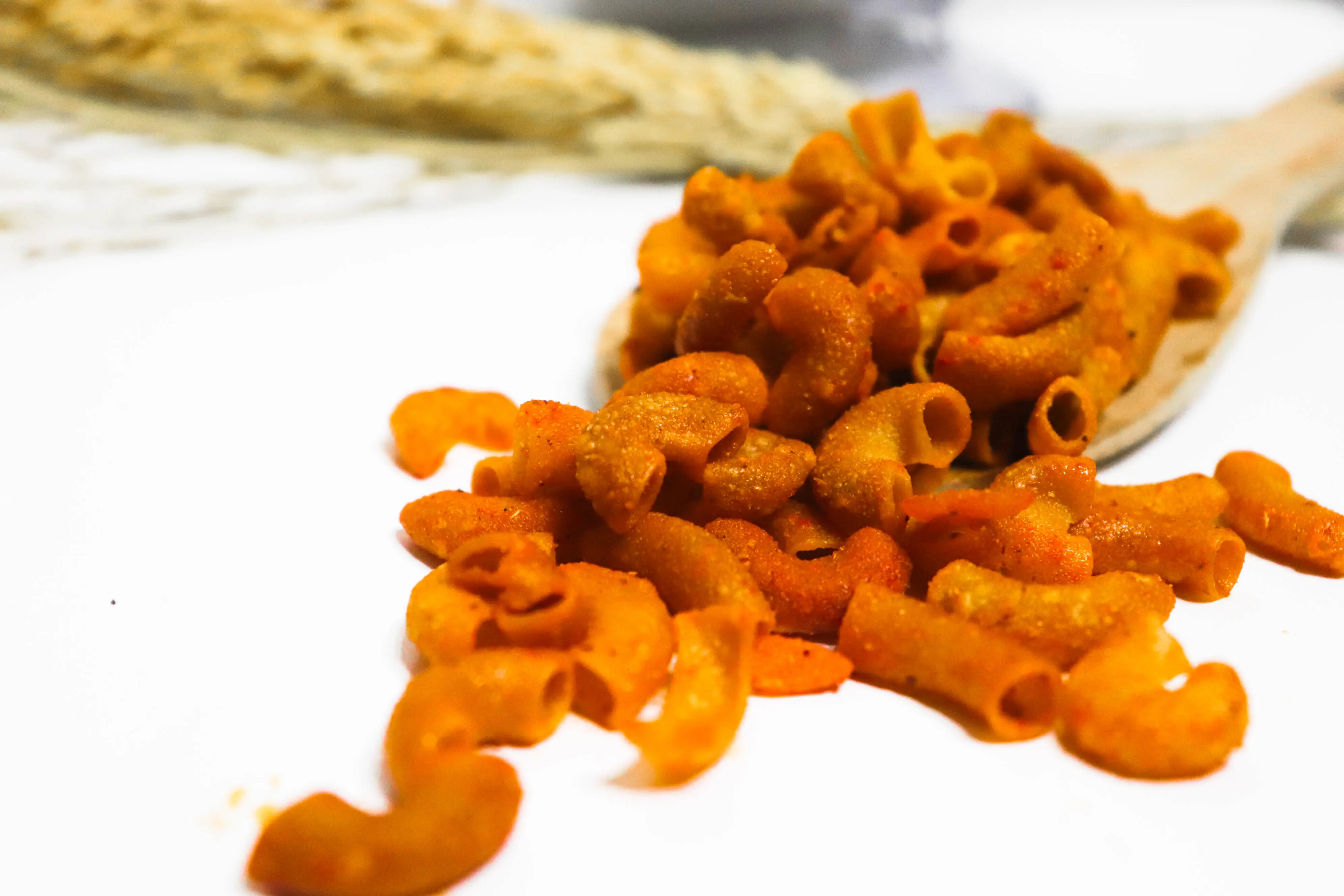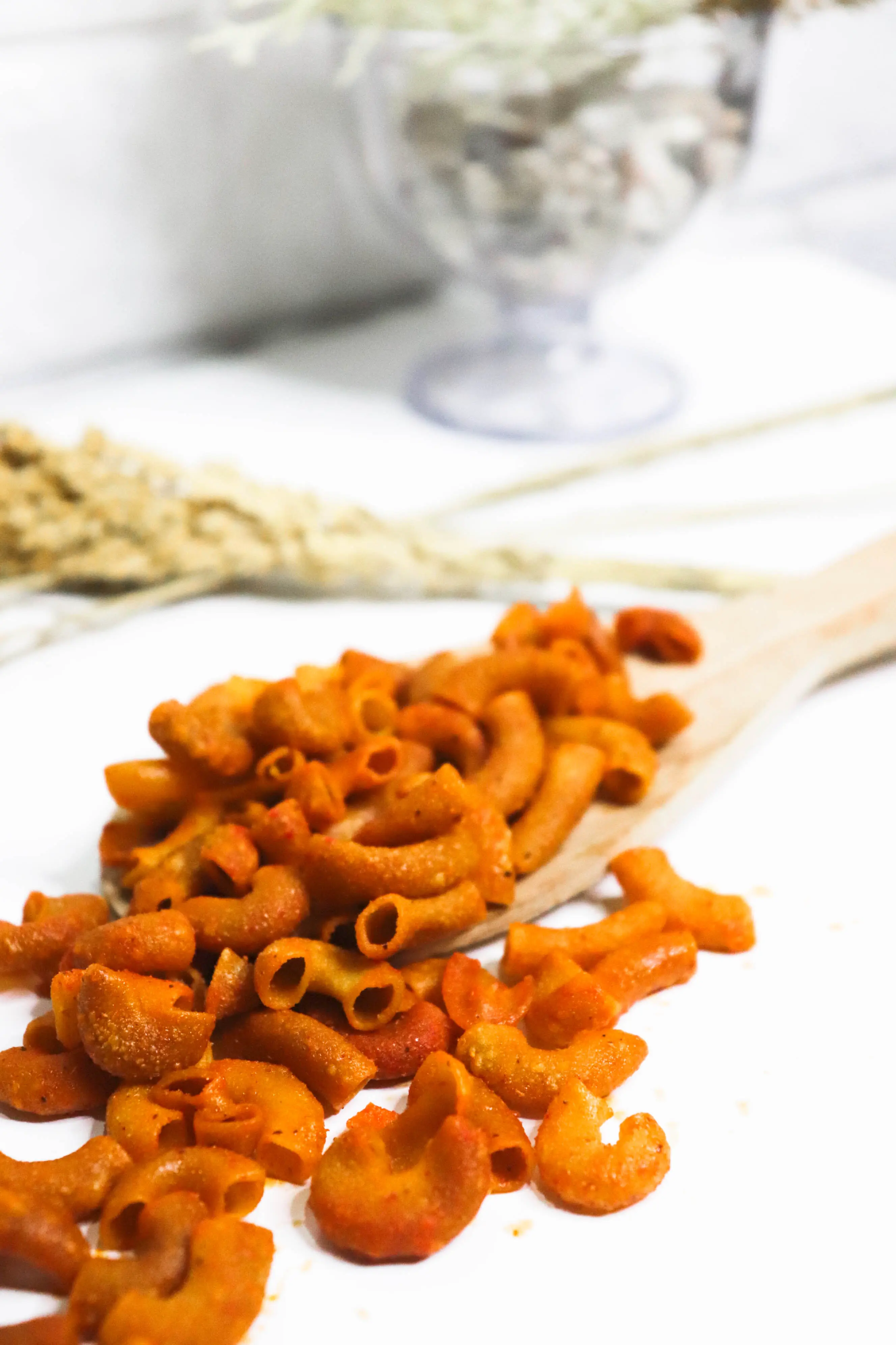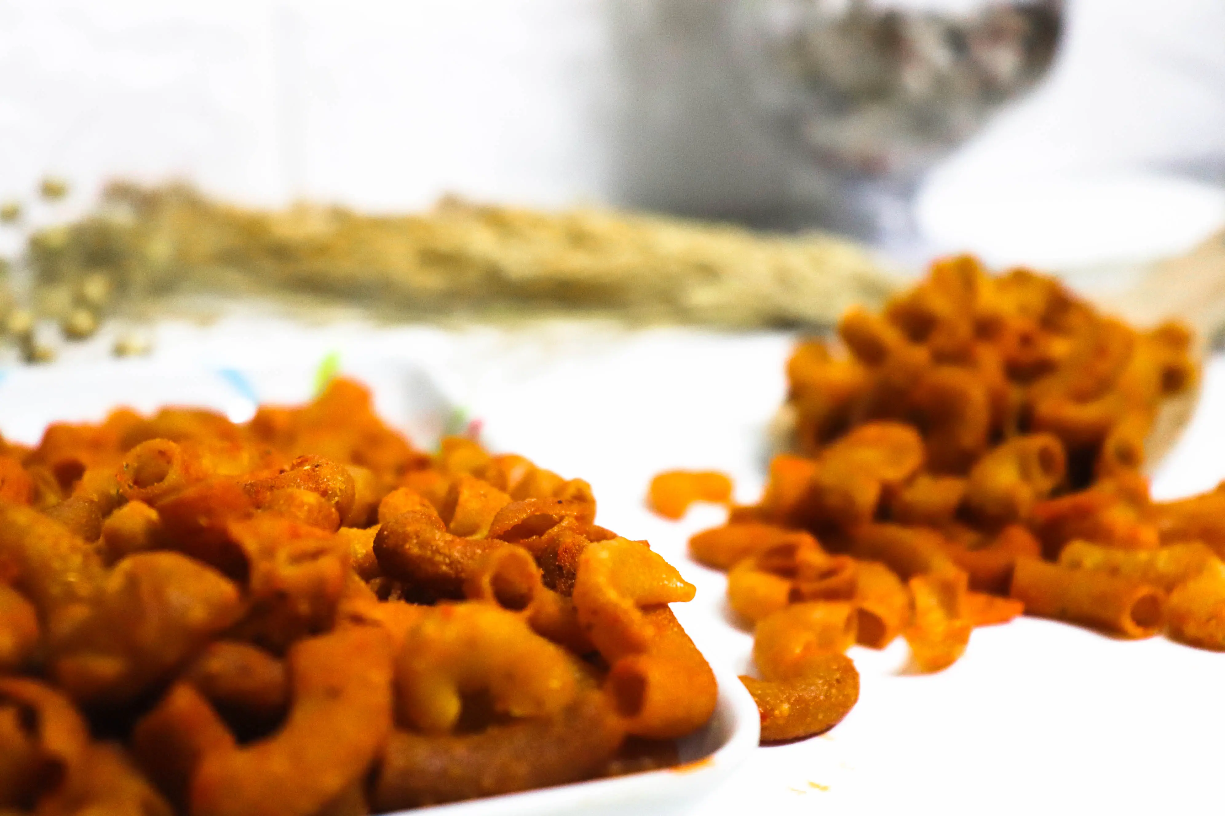 Zooming in on the intricate details, this photo shows tender strands of perfectly cooked macaroni, coated with delicious spices. Every bite promises a delightful explosion of flavors and textures.