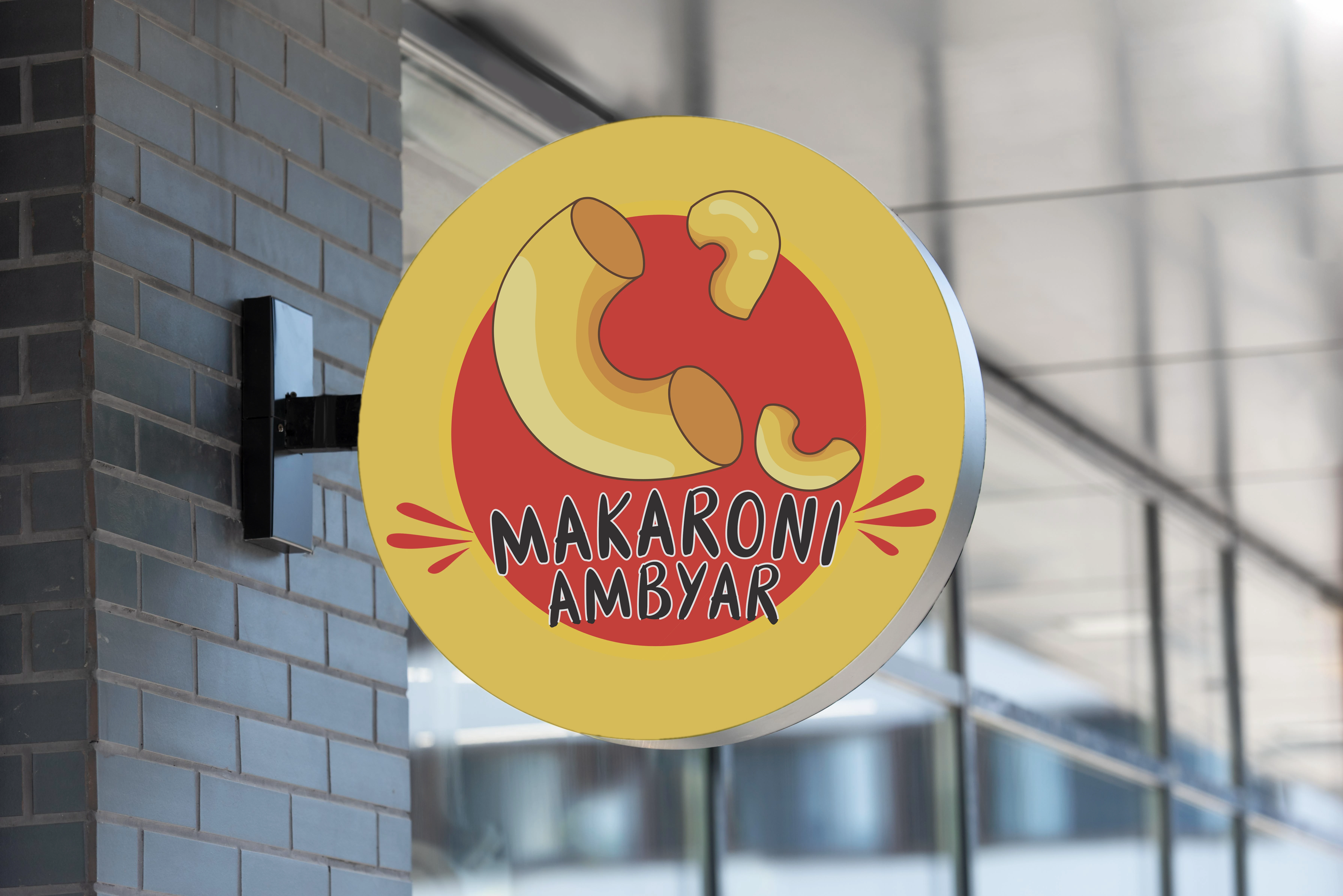 Captures the essence of "Makaroni Ambyar" by combining playful elements with an eye-catching design, creating a memorable and appetizing visual representation.